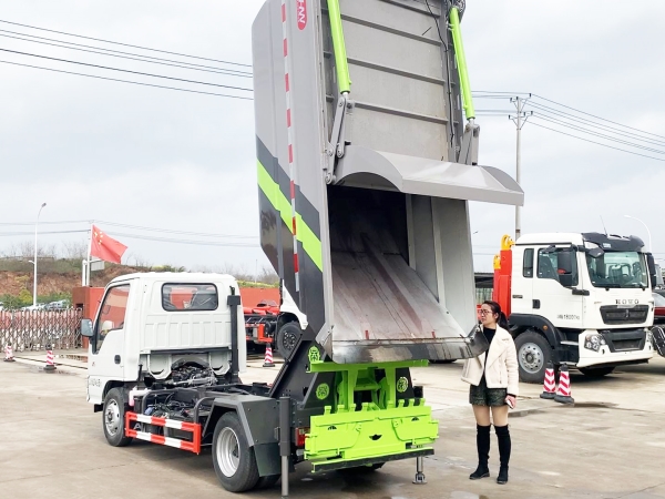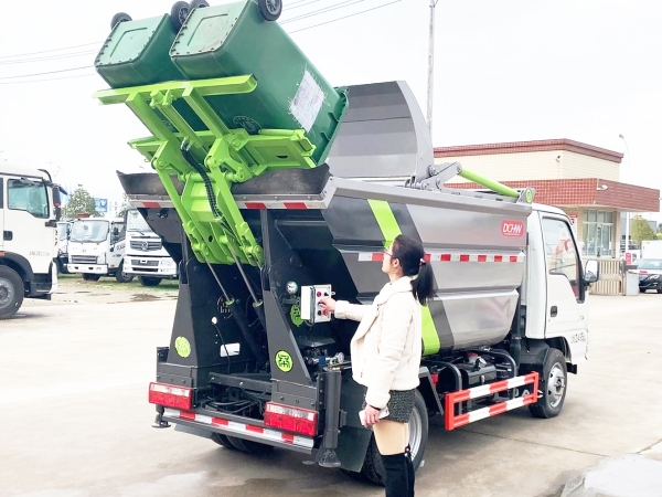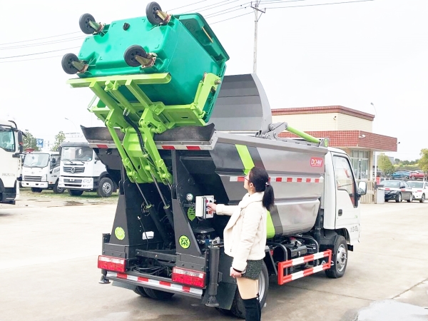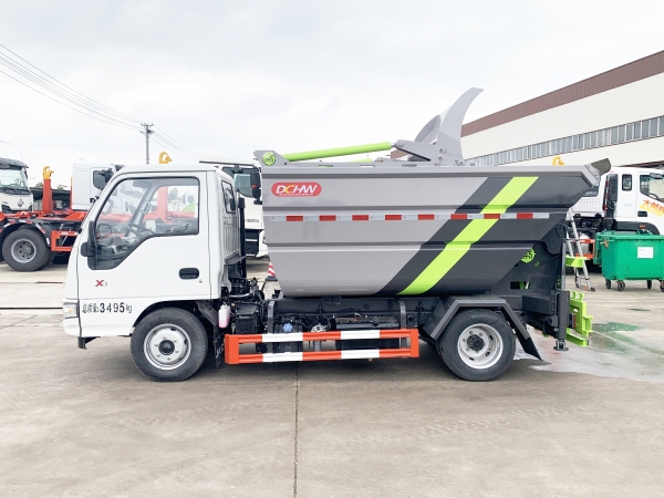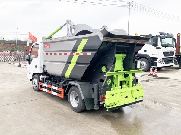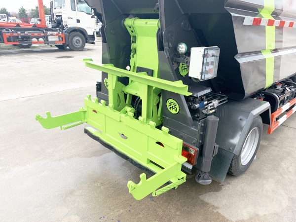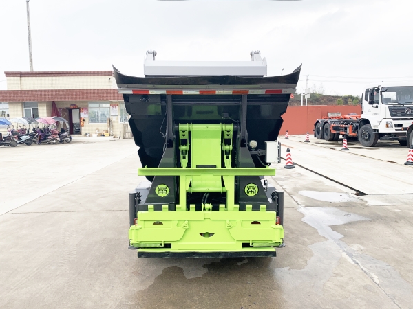 自裝卸式垃圾車在底盤的基礎(chǔ)上,加裝垃圾箱體、連接附件、防護(hù)欄及液壓系統(tǒng)等裝置。具有操作安全、使用性能穩(wěn)定、返修率低、售后服務(wù)及時(shí)周到等特點(diǎn)。本產(chǎn)品主要用于收集與轉(zhuǎn)運(yùn)城市住宅小區(qū)、鄉(xiāng)鎮(zhèn)街道等產(chǎn)生的生活垃圾。整車小巧靈活,行動(dòng)方便,適應(yīng)人流密集的商業(yè)區(qū)域和道路交通情況較差的城鄉(xiāng)地區(qū)。本車配有后掛桶進(jìn)料機(jī)構(gòu),在翻桶處操作,可與120L/240L/660L標(biāo)準(zhǔn)塑料桶對(duì)接。整車具有自卸功能,卸料方便。結(jié)構(gòu)結(jié)實(shí)耐腐 船型箱體結(jié)構(gòu)實(shí)現(xiàn)100%無泄漏;刮板進(jìn)料+壓縮 壓縮效率高;高位舉升自卸結(jié)構(gòu),卸料干凈 對(duì)接方便;多功能翻桶進(jìn)料機(jī)構(gòu) 進(jìn)料快捷穩(wěn)定;液壓系統(tǒng)穩(wěn)定可靠;自動(dòng)化程度高,電液聯(lián)合控制。