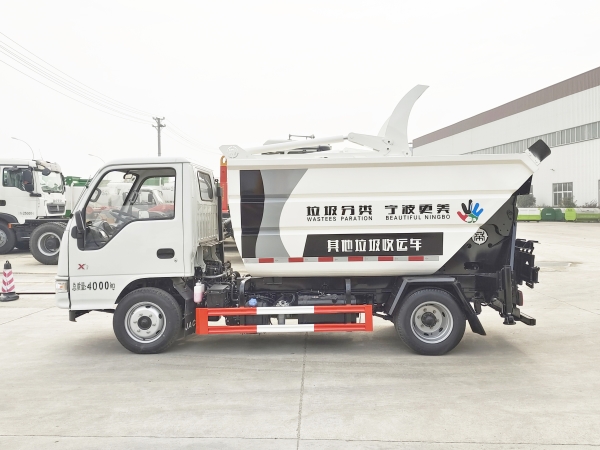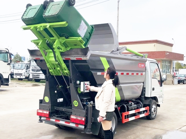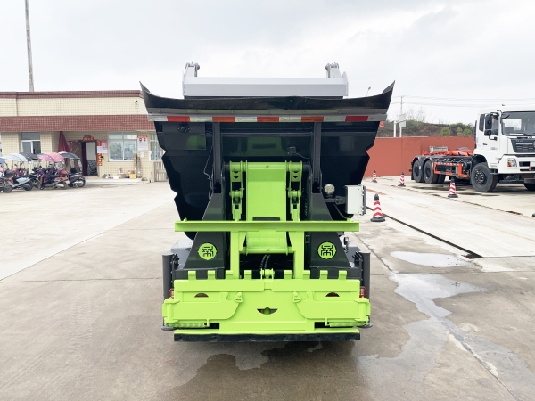 自裝卸式垃圾車在底盤的基礎(chǔ)上,加裝垃圾箱體、連接附件、防護(hù)欄及液壓系統(tǒng)等裝置。具有操作安全、使用性能穩(wěn)定、返修率低、售后服務(wù)及時(shí)周到等特點(diǎn)。本產(chǎn)品主要用于收集與轉(zhuǎn)運(yùn)城市住宅小區(qū)、鄉(xiāng)鎮(zhèn)街道等產(chǎn)生的生活垃圾。整車小巧靈活,行動(dòng)方便,適應(yīng)人流密集的商業(yè)區(qū)域和道路交通情況較差的城鄉(xiāng)地區(qū)。本車配有后掛桶進(jìn)料機(jī)構(gòu),在翻桶處操作,可與120L/240L/660L標(biāo)準(zhǔn)塑料桶對(duì)接。整車具有自卸功能,卸料方便。結(jié)構(gòu)結(jié)實(shí)耐腐 船型箱體結(jié)構(gòu)實(shí)現(xiàn)100%無(wú)泄漏;刮板進(jìn)料+壓縮 壓縮效率高;高位舉升自卸結(jié)構(gòu),卸料干凈 對(duì)接方便;多功能翻桶進(jìn)料機(jī)構(gòu) 進(jìn)料快捷穩(wěn)定;液壓系統(tǒng)穩(wěn)定可靠;自動(dòng)化程度高,電液聯(lián)合控制。