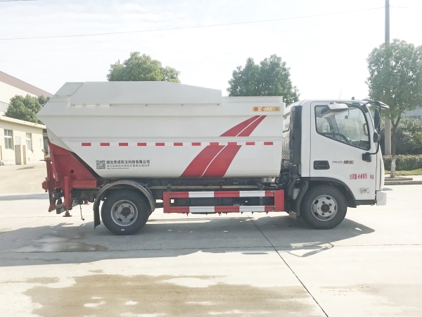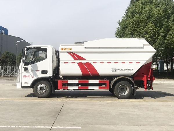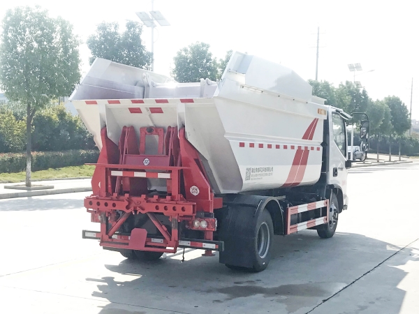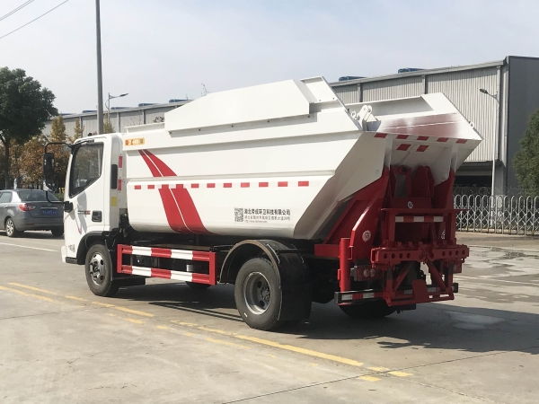 自裝卸式垃圾車在底盤的基礎(chǔ)上,加裝垃圾箱體、連接附件、防護(hù)欄及液壓系統(tǒng)等裝置。具有操作安全、使用性能穩(wěn)定、返修率低、售后服務(wù)及時周到等特點(diǎn)。本產(chǎn)品主要用于收集與轉(zhuǎn)運(yùn)城市住宅小區(qū)、鄉(xiāng)鎮(zhèn)街道等產(chǎn)生的生活垃圾。整車小巧靈活,行動方便,適應(yīng)人流密集的商業(yè)區(qū)域和道路交通情況較差的城鄉(xiāng)地區(qū)。本車配有后掛桶進(jìn)料機(jī)構(gòu),在翻桶處操作,可與120L/240L/660L標(biāo)準(zhǔn)塑料桶對接。整車具有自卸功能,卸料方便。結(jié)構(gòu)結(jié)實耐腐 船型箱體結(jié)構(gòu)實現(xiàn)100%無泄漏;刮板進(jìn)料+壓縮 壓縮效率高;高位舉升自卸結(jié)構(gòu),卸料干凈 對接方便;多功能翻桶進(jìn)料機(jī)構(gòu) 進(jìn)料快捷穩(wěn)定;液壓系統(tǒng)穩(wěn)定可靠;自動化程度高,電液聯(lián)合控制。