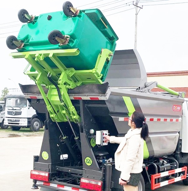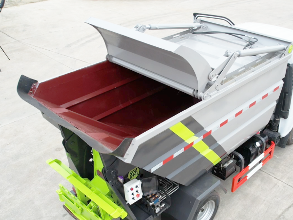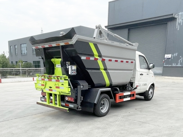 自裝卸式垃圾車在底盤的基礎(chǔ)上,加裝垃圾箱體、連接附件、防護(hù)欄及液壓系統(tǒng)等裝置。具有操作安全、使用性能穩(wěn)定、返修率低、售后服務(wù)及時(shí)周到等特點(diǎn)。本產(chǎn)品主要用于收集與轉(zhuǎn)運(yùn)城市住宅小區(qū)、鄉(xiāng)鎮(zhèn)街道等產(chǎn)生的生活垃圾。整車小巧靈活,行動(dòng)方便,適應(yīng)人流密集的商業(yè)區(qū)域和道路交通情況較差的城鄉(xiāng)地區(qū)。本車配有后掛桶進(jìn)料機(jī)構(gòu),在翻桶處操作,可與120L/240L/660L標(biāo)準(zhǔn)塑料桶對(duì)接。整車具有自卸功能,卸料方便。結(jié)構(gòu)結(jié)實(shí)耐腐 船型箱體結(jié)構(gòu)實(shí)現(xiàn)100%無泄漏;刮板進(jìn)料+壓縮 壓縮效率高;高位舉升自卸結(jié)構(gòu),卸料干凈 對(duì)接方便;多功能翻桶進(jìn)料機(jī)構(gòu) 進(jìn)料快捷穩(wěn)定;液壓系統(tǒng)穩(wěn)定可靠;自動(dòng)化程度高,電液聯(lián)合控制。