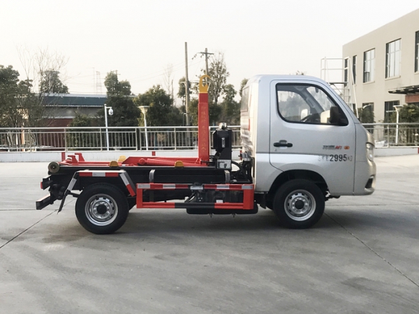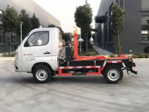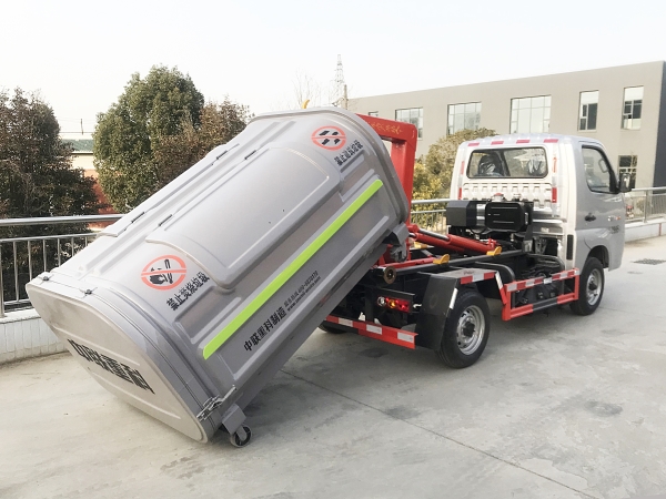 車廂可卸載式垃圾車,又稱勾臂式垃圾車、拉臂式垃圾車。該車廣泛適用與城市街道學校垃圾處理,可一車配備多個斗,各個垃圾點放置多個,帶自卸功能,液壓操作,方便傾倒。在平日里可將車載垃圾箱放置到各個垃圾收集站,待垃圾收集滿后,該車可直接開赴至垃圾站,通過液壓系統(tǒng)的操控,可將垃圾車后座上加裝的勾臂放下,掛住站內垃圾箱前端的連接點,將垃圾箱拉至車體的后座上,此時即可啟動車輛,將垃圾運送至垃圾處理站內,進行自卸式傾倒。該車主要的優(yōu)點就是可一車配多斗,一輛車就可以維持數(shù)個垃圾收集站的運轉,效率高,且箱體為密封式設計,不會造成二次污染。