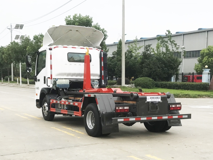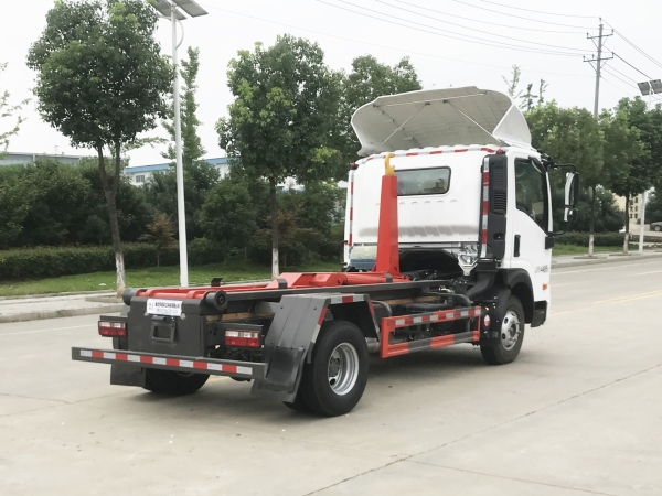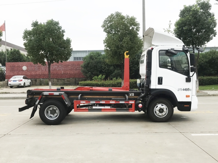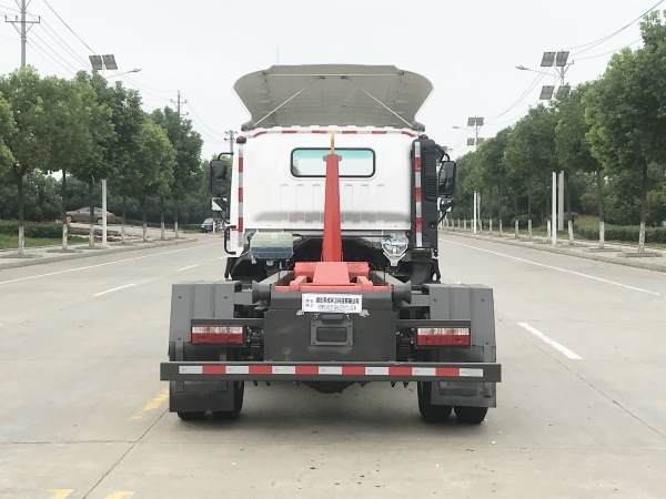 車廂可卸載式垃圾車,又稱勾臂式垃圾車、拉臂式垃圾車。該車廣泛適用與城市街道學(xué)校垃圾處理,可一車配備多個(gè)斗,各個(gè)垃圾點(diǎn)放置多個(gè),帶自卸功能,液壓操作,方便傾倒。在平日里可將車載垃圾箱放置到各個(gè)垃圾收集站,待垃圾收集滿后,該車可直接開赴至垃圾站,通過液壓系統(tǒng)的操控,可將垃圾車后座上加裝的勾臂放下,掛住站內(nèi)垃圾箱前端的連接點(diǎn),將垃圾箱拉至車體的后座上,此時(shí)即可啟動(dòng)車輛,將垃圾運(yùn)送至垃圾處理站內(nèi),進(jìn)行自卸式傾倒。該車主要的優(yōu)點(diǎn)就是可一車配多斗,一輛車就可以維持?jǐn)?shù)個(gè)垃圾收集站的運(yùn)轉(zhuǎn),效率高,且箱體為密封式設(shè)計(jì),不會(huì)造成二次污染。