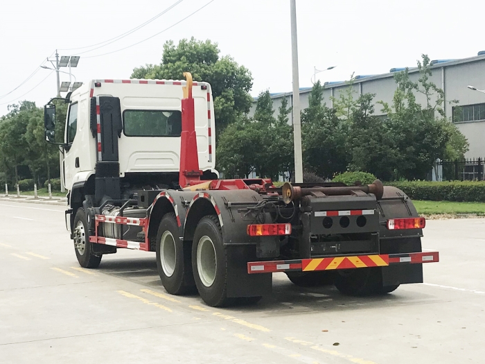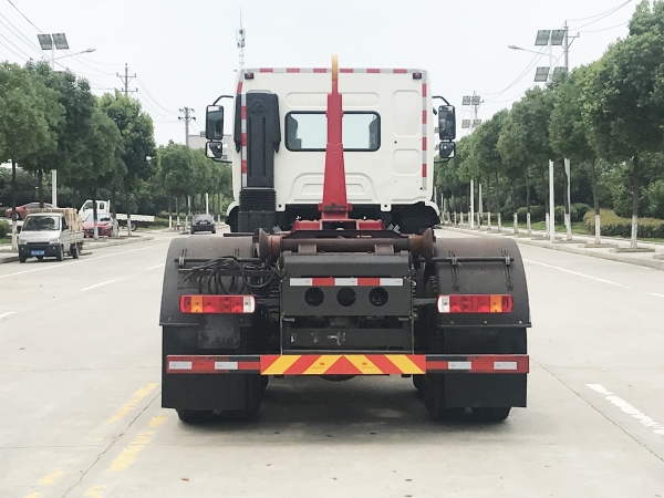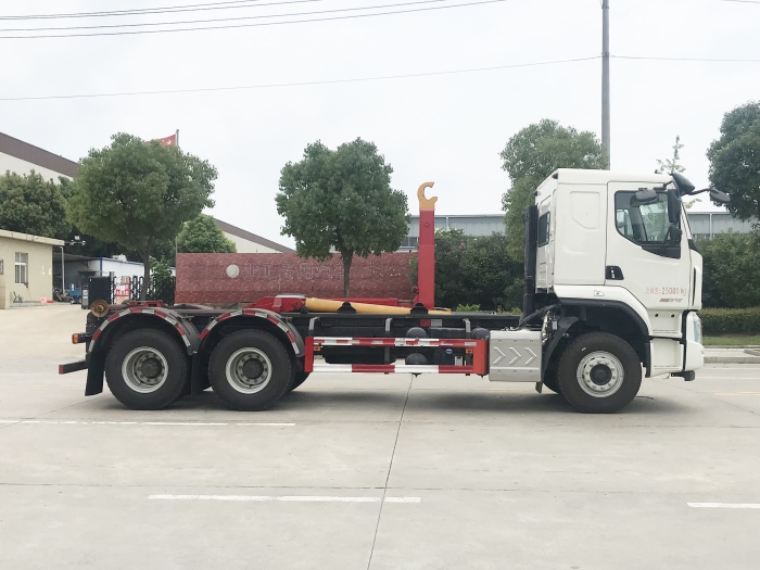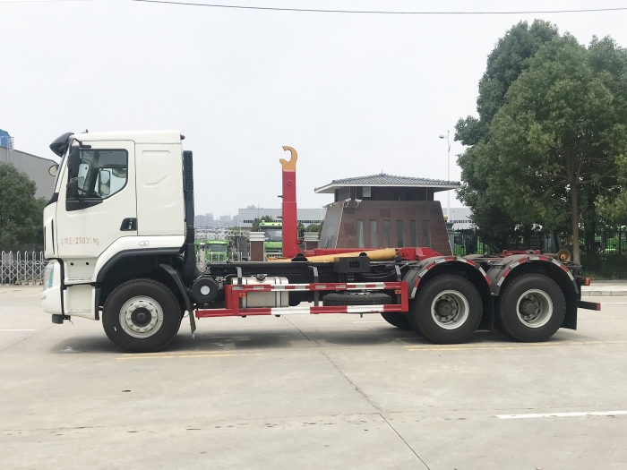 車廂可卸載式垃圾車,又稱勾臂式垃圾車、拉臂式垃圾車。該車廣泛適用與城市街道學(xué)校垃圾處理,可一車配備多個(gè)斗,各個(gè)垃圾點(diǎn)放置多個(gè),帶自卸功能,液壓操作,方便傾倒。在平日里可將車載垃圾箱放置到各個(gè)垃圾收集站,待垃圾收集滿后,該車可直接開赴至垃圾站,通過液壓系統(tǒng)的操控,可將垃圾車后座上加裝的勾臂放下,掛住站內(nèi)垃圾箱前端的連接點(diǎn),將垃圾箱拉至車體的后座上,此時(shí)即可啟動(dòng)車輛,將垃圾運(yùn)送至垃圾處理站內(nèi),進(jìn)行自卸式傾倒。該車主要的優(yōu)點(diǎn)就是可一車配多斗,一輛車就可以維持?jǐn)?shù)個(gè)垃圾收集站的運(yùn)轉(zhuǎn),效率高,且箱體為密封式設(shè)計(jì),不會(huì)造成二次污染。