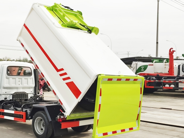 自裝卸式垃圾車是收集、中轉(zhuǎn)清理運輸垃圾,避免二次污染的新型環(huán)衛(wèi)車輛,其主要特點是垃圾收集方式簡便、高效、環(huán)保性好,整車?yán)眯矢?,廣泛適用于環(huán)衛(wèi)、市政、物業(yè)小區(qū)、垃圾多而集中的居民區(qū)、城市街道垃圾處理,均具有密封自卸功能,液壓操作,傾卸垃圾方便。 在底盤的基礎(chǔ)上,加裝垃圾箱體、連接附件、防護(hù)欄及液壓系統(tǒng)等裝置。具有操作安全、使用性能穩(wěn)定、返修率低、售后服務(wù)及時周到等特點。本產(chǎn)品主要用于收集與轉(zhuǎn)運城市住宅小區(qū)、鄉(xiāng)鎮(zhèn)街道等產(chǎn)生的生活垃圾。整車小巧靈活,行動方便,適應(yīng)人流密集的商業(yè)區(qū)域和道路交通情況較差的城鄉(xiāng)地區(qū)。本車配有側(cè)掛桶進(jìn)料機構(gòu),在翻桶處操作,可與120L/240L標(biāo)準(zhǔn)塑料桶對接。整車具有自卸功能,卸料方便。